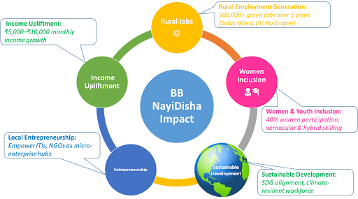 BB NayiDisha is a tech-enabled platform to connect rural blue collar workforce with green sector opportunities. It provide skill development, job and overall social upliftment of rural families. BB NayiDisha is committed to equipping India's workforce with the essential skills to thrive in the emerging green economy. Our key focus sectors include: